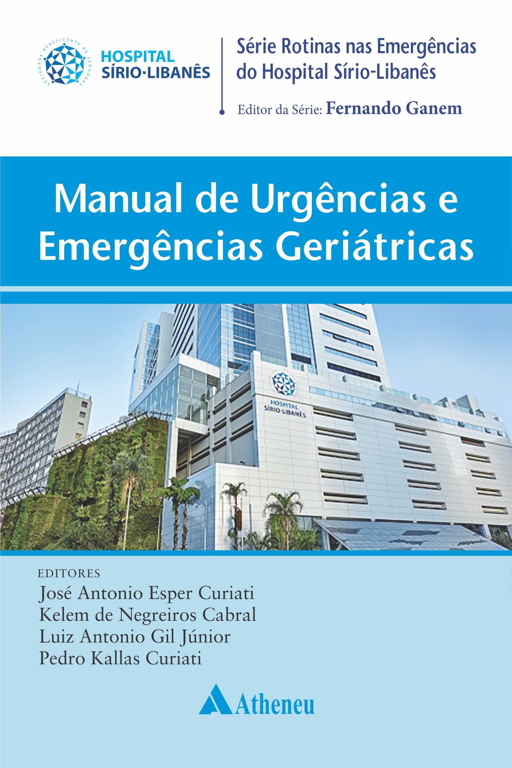 A Série Rotinas nas Emergências do Hospital Sírio-Libanês tem por proposta a divulgação dos serviços emergenciais e do pronto-atendimento que alcançam o nível da excelência dessa reconhecida instituição hospitalar nacional. Nas situações críticas, sempre presentes nas emergências, a triagem rápida e eficiente é condição fundamental para a boa assistência. Os quadros de mais risco e gravidade têm prioridade. Na retaguarda, posiciona-se equipe multiprofissional de reconhecida competência técnica e relevante atendimento humanitário, tudo de acordo com as melhores práticas da emergência. O presente Manual de Urgências e Emergências Geriátricas aponta para especificidade do paciente geriátrico que, por sinal, apresenta altas taxas de internação em unidades de cuidados agudos, internação hospitalar prolongada, readmissão hospitalar não programada, mortalidade e dependência funcional.