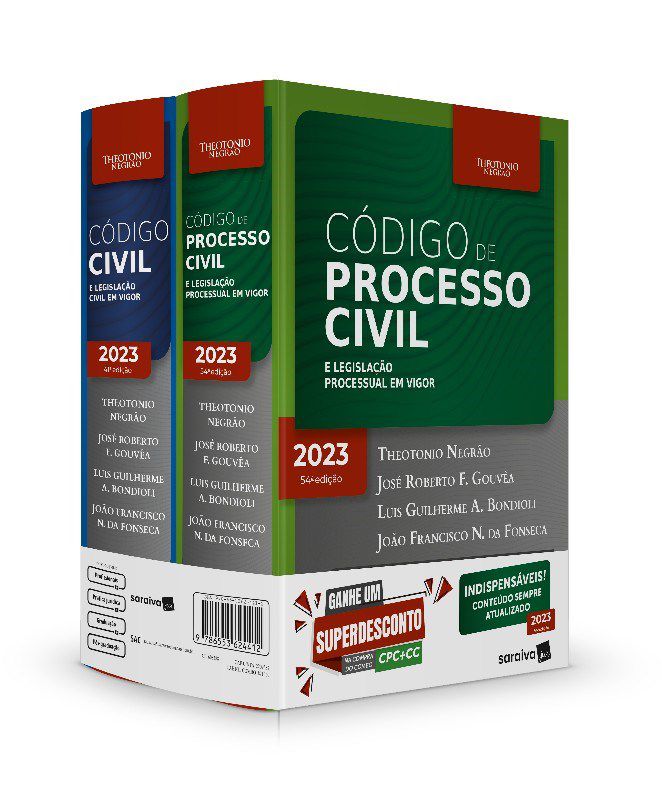 Chegaram ao mercado as tão aguardadas edições 2023 dos consagrados CÓDIGO CIVIL E LEGISLAÇÃO CIVIL EM VIGOR e CÓDIGO DE PROCESSO CIVIL E LEGISLAÇÃO PROCESSUAL EM VIGOR, mantendo a essência de obras que se destacam pelos minuciosos comentários artigo por artigo, acrescidos de conteúdo doutrinário, as principais decisões de Tribunais e referências a outros artigos e leis. Tratam-se de obras imprescindíveis aos profissionais do Direito e também aos estudantes que ingressam ao estágio em Direito que necessitam de informações seguras e precisas a respeito de todo o universo do Direito Civil e Processual Civil. As presentes edições estão atualizadas de acordo com as seguintes atualizações legislativas: Leis 14.309, de 8.3.22 (reuniões e deliberações virtuais), 14.340, de 18.5.22 (alienação parental), 14.382, de 27.6.22 (Sistema Eletrônico dos Registros Públicos), 14.405, de 12.7.22, e 14.451, de 21.9.22 (alteradoras do Código Civil), 14.318, de 29.3.22 (protocolo integrado judicial), 14.